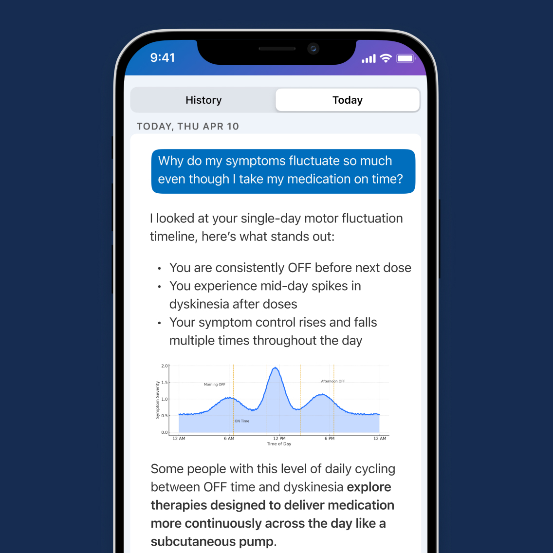 Parkinson’s can be emotionally and practically exhausting. StrivePD Guardian gives you an always-on AI companion. There’s no script, and no need to figure it out alone. Ask questions in the moment and reflect on your day-to-day experience, all in one place.